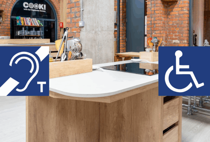 COOK! with the Vegetarian Society has invested in accessibility upgrades as part of its commitment in becoming a place that is accessible and welcoming to all.