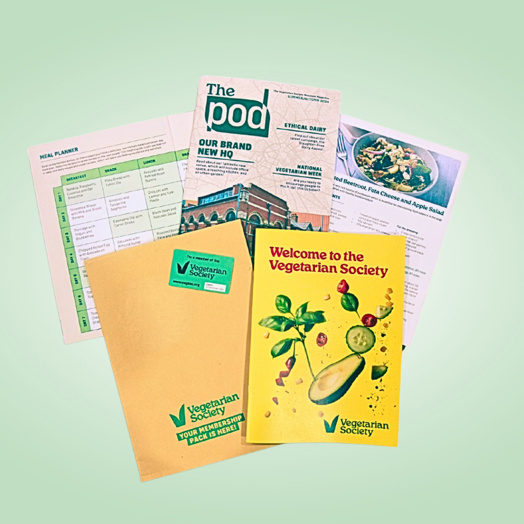 Join the Vegetarian Society from just £3 a month and claim your exclusive membership pack containing: