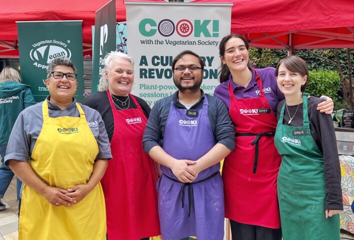 This wasn’t just a few of us popping over for a bite — our whole organisation came together to represent the Vegetarian Society. It was a full team effort, and a great opportunity for us to step out of the office, get our hands dirty (or floury!), and introduce ourselves to our neighbours with the thing we know best: delicious, accessible veggie and plant-based food.